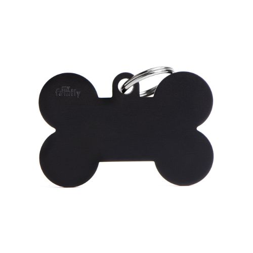 Chapa identificativa de aluminio anodizado negra en forma de hueso – elegancia y seguridad para tu mascota
