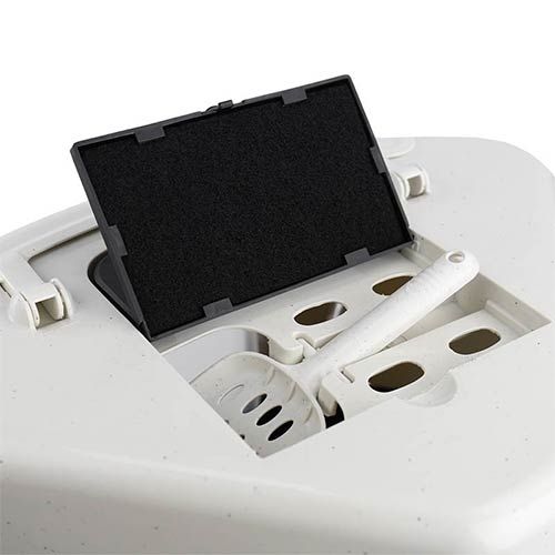 Su diseño cerrado proporciona mayor privacidad, ayudando a reducir el estrés del gato y favoreciendo el uso regular del arenero. La puerta abatible facilita el acceso y crea una sensación de refugio, mientras que el filtro de carbón activo integrado ayuda a neutralizar los malos olores de forma continua.
