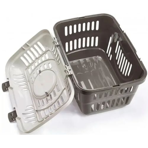 Fabricado en plástico duradero y ligero, este transportín es fácil de llevar gracias a su asa ergonómica y su peso equilibrado. La tapa superior con apertura amplia facilita introducir y sacar a tu mascota sin forzar ni generar incomodidad. Además, sus cierres seguros garantizan que todo el viaje sea estable, evitando aperturas accidentales.