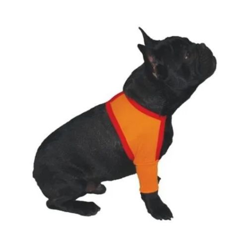 Fabricada con una tela elástica, ligera y transpirable, se adapta al cuerpo del perro sin oprimir ni causar molestias, permitiendo libertad total de movimiento. Su diseño tipo camiseta, con ajuste localizable en la zona que necesita protección, mantiene los vendajes en su lugar y reduce el riesgo de infecciones, irritaciones o retirada accidental del apósito.