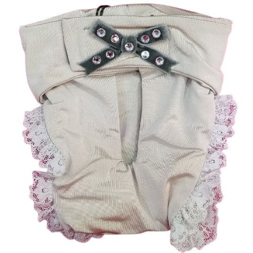 Braguita de celo beige con encaje y lazo con brillantes – Elegancia y confort para tu perrita