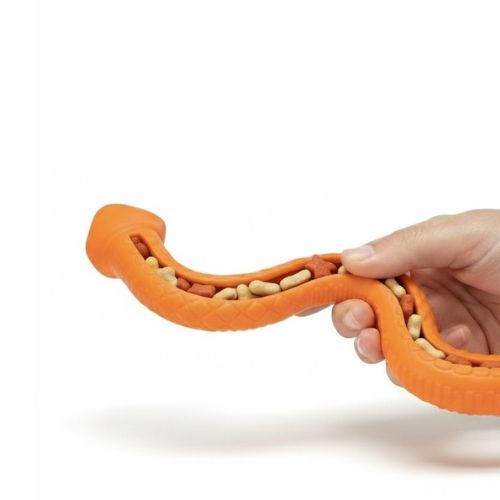 Su diseño serpenteante hace que sea fácil de agarrar, lanzar y manipular, tanto por tu perro como por ti, convirtiéndolo en una excelente opción para juegos interactivos. Además, al rellenarlo, se transforma en un juego de olfato y habilidad que potencia la concentración y reduce la ansiedad.