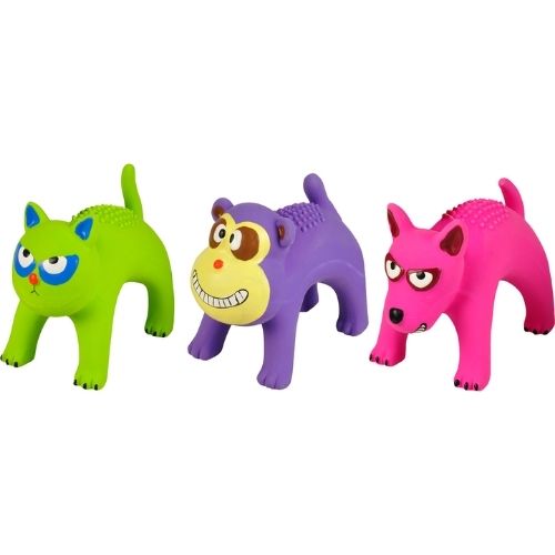 Este juguete de látex para perros con sonido está diseñado para despertar el interés inmediato de tu mascota y mantenerla entretenida durante más tiempo. Sus formas divertidas y colores vivos captan la atención desde el primer momento, invitando al perro a morder, apretar y jugar de manera activa.