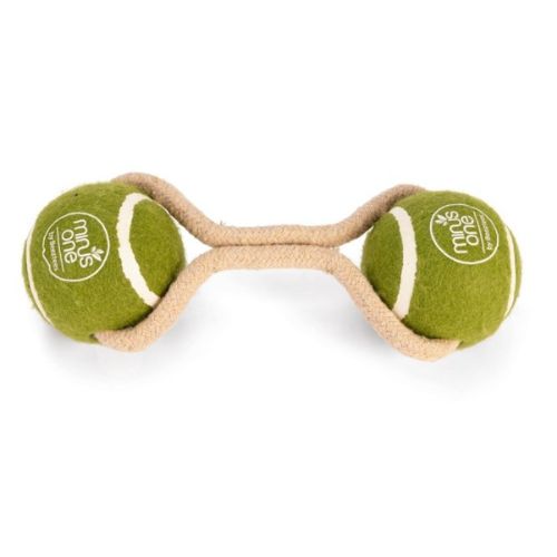 Convierte cada momento de juego en pura diversión con este juguete doble de pelotas unidas por cuerda resistente, diseñado especialmente para perros activos y juguetones. Su original forma combina dos pelotas tipo tenis con un agarre firme de cuerda natural, perfecto para juegos de tirar, morder y recoger.