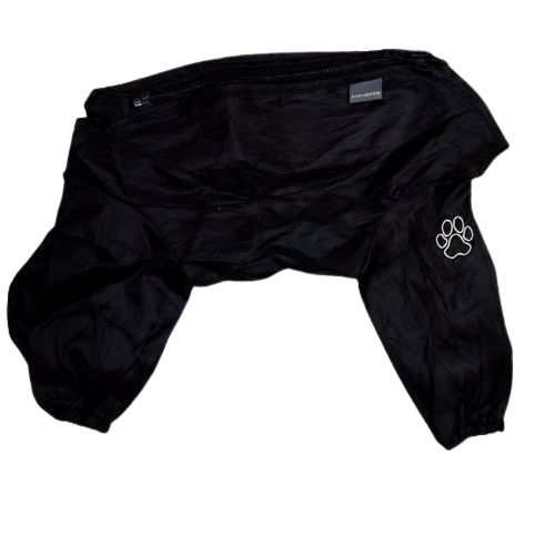 Su diseño cubre gran parte del cuerpo, actuando como una barrera eficaz contra lluvia, barro, polvo y salpicaduras, y reduciendo al máximo la suciedad que llega a casa. El material es ligero y flexible, permitiendo que el perro se mueva con total libertad sin sensación de agobio. La cremallera superior hace que ponerlo y quitarlo sea rápido y sencillo, mientras que los puños elásticos aseguran un ajuste perfecto. El detalle de la huella bordada añade un toque moderno y adorable.