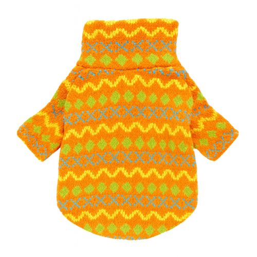 El diseño en tonos naranja, verde y azul, con patrones llamativos, convierte a este suéter en una prenda divertida y vibrante que destacará en cada salida. Además, su tejido ligero y flexible asegura que tu perro pueda moverse con total libertad, sin incomodidades ni limitaciones.