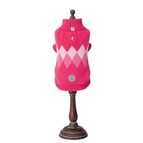 Jersey rosa con diseño de rombos para perro – estilo clásico, abrigo y suavidad en un solo look