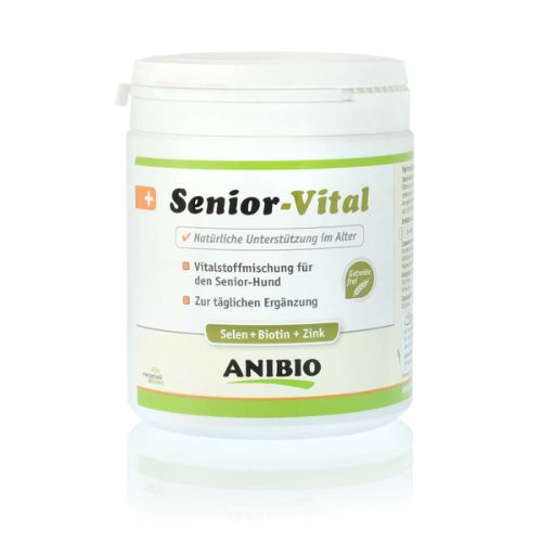 ANIBIO Senior-Vital: El impulso natural que tu perro mayor necesita. Aporta vitalidad, refuerza articulaciones y mantiene su pelaje radiante. ¡Devuélvele la energía y alegría de siempre!